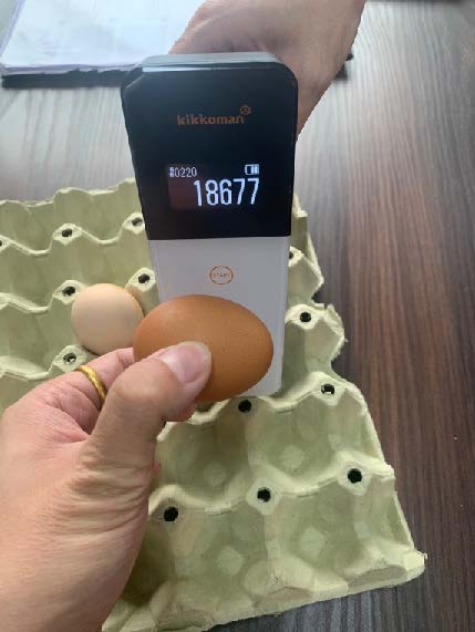 • Bacterial contamination: Egg surface swabs routinely exceeded 18,000 RLU (Kikkoman hygiene testing), surpassing Grade A classification thresholds.